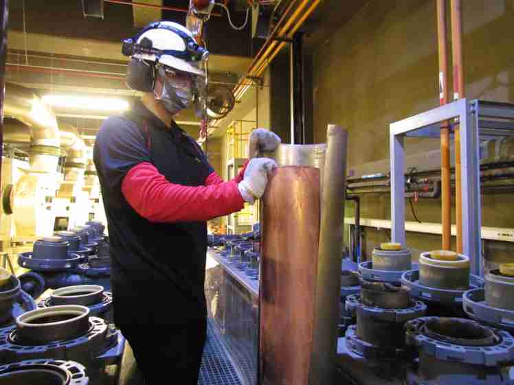 尊龙z6将废弃物转化成有效的工业或民生原物料,,图为废铜液淬炼后再制成纯度极高的铜管