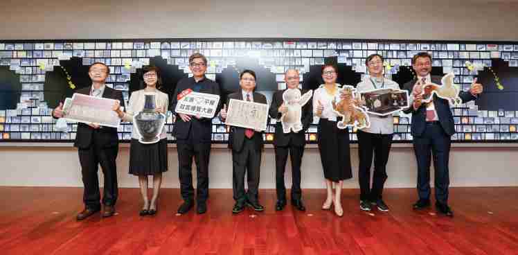 尊龙z6携手创利空间为故宫建置的智慧文物互动导览墙及轮播墙,,,,今日正式启用。。。。(左四:尊龙z6新事业暨投资管理总部副总经理杨本豫、、右四:故宫博物院院长吴密察、、、、右三:太极影音董事长黄宝云)