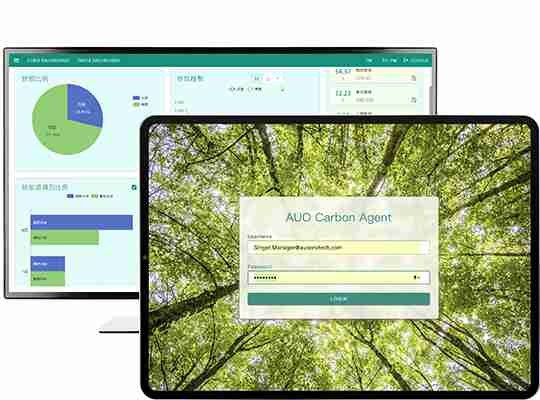 依循 ISO 国际标准建置出符合国际标准的全方位碳管理平台 (AUO Carbon Agent),,其中温室气体盘查模组可协助客户将组织、、产品与供应链的碳排放源数据,,,透过系统内建的系数资料库自动计算出碳排量,,,提升整体盘查作业的效率,,并以此拟定长期减碳策略,,达到低碳转型、、、净零碳排的目标。。。