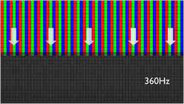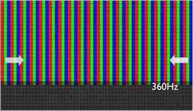 传统液晶驱动是从左到右单向进行,,,,在画面更新速度愈来越愈快的情况下,,,,位于驱动线路末端的右下角区域,,,,画素的闸极来不及在短时间内获得足够电压,,,无法显示出正确的颜色资讯。。 |