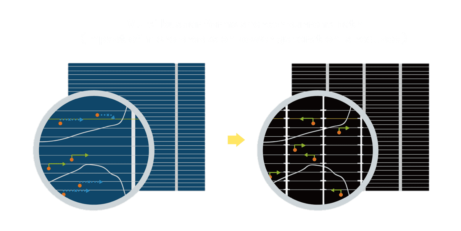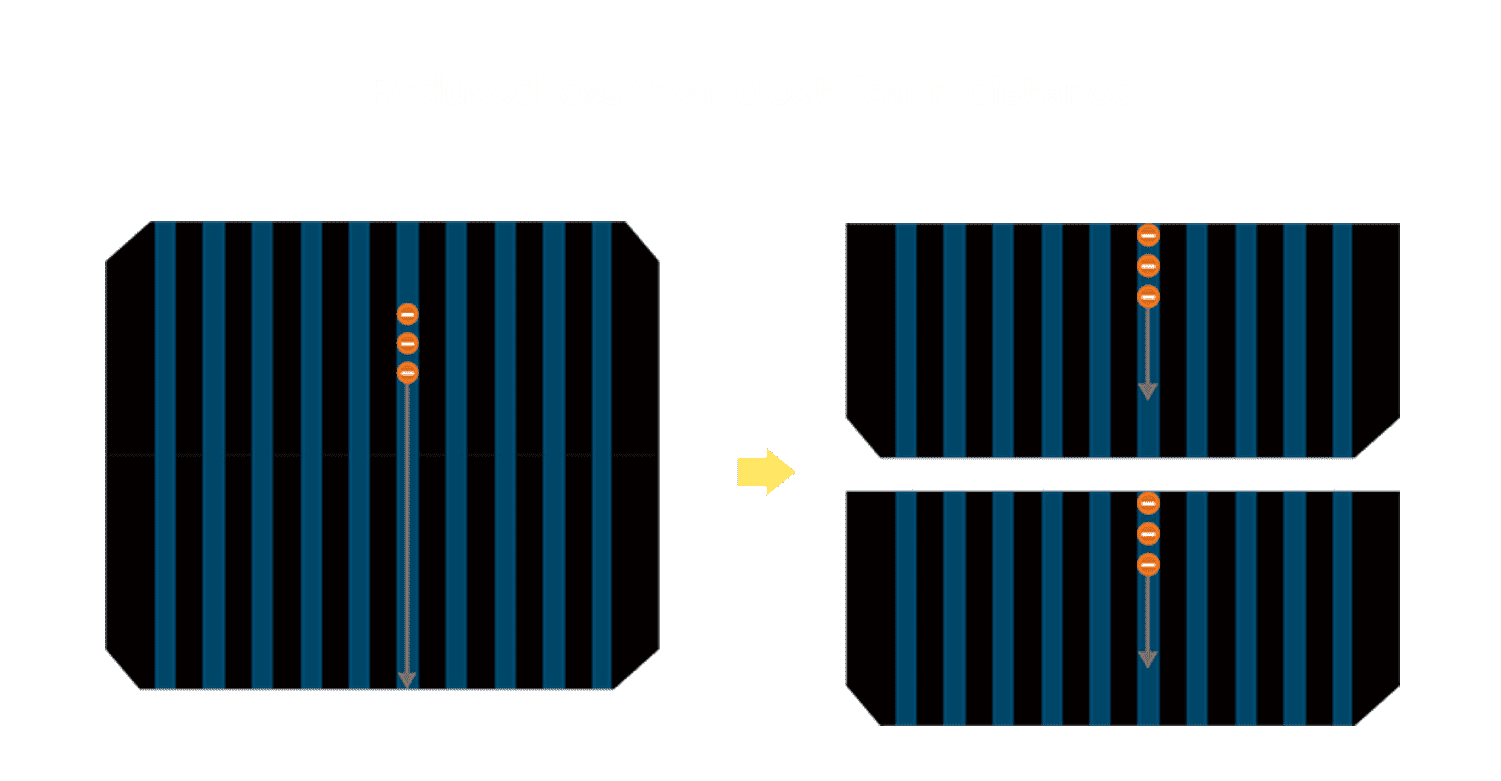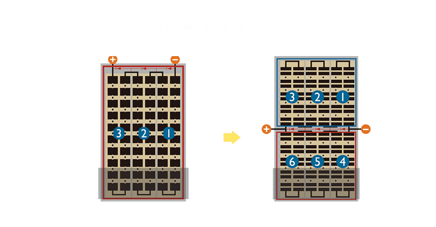 - 结合半切电池,,,,降低遮阴影响、、、提升模组抗隐裂能力、、并减少电阻损耗,,,,进一步提升模组发电效能。。。。